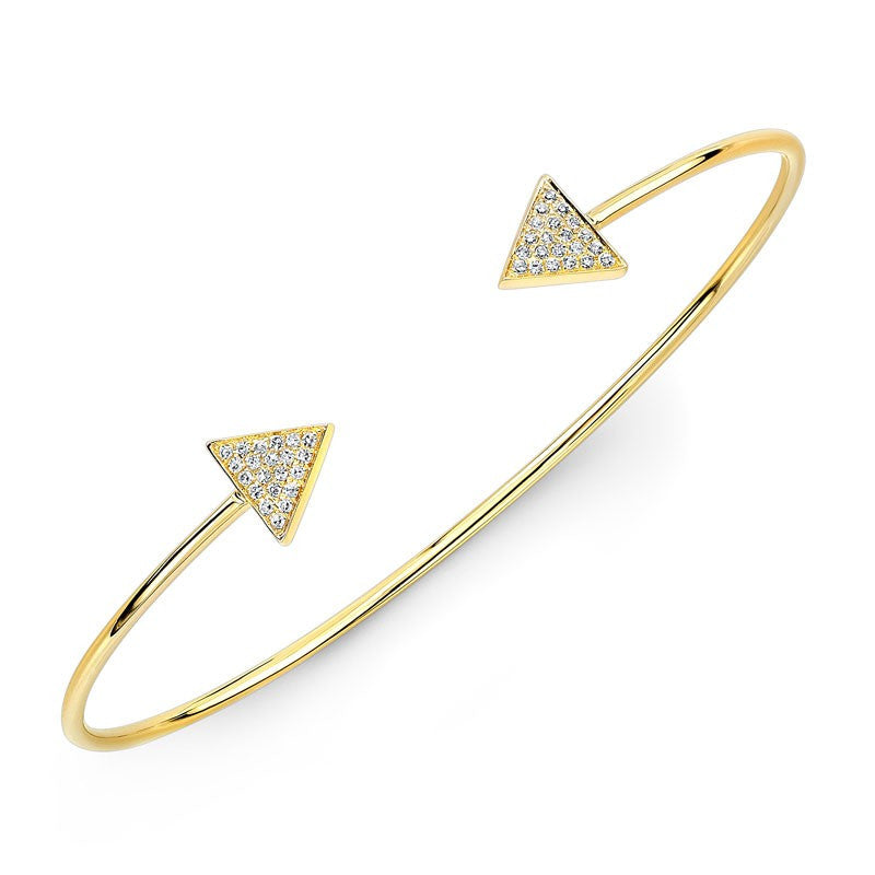 This Diamond Pave Triangle Cuff Bangle (0.13ct.tw) is available in 14K White, Yellow, and Rose Gold.