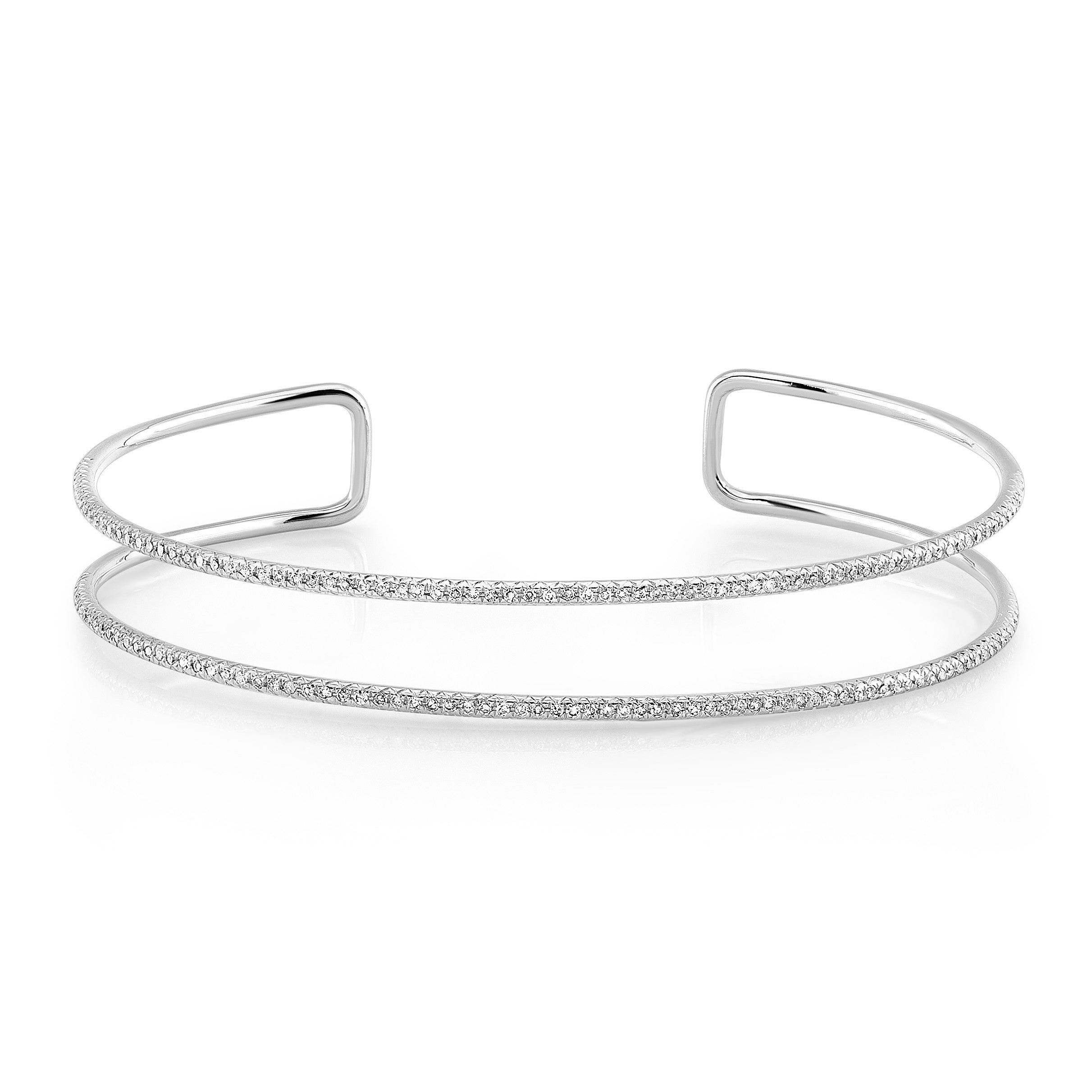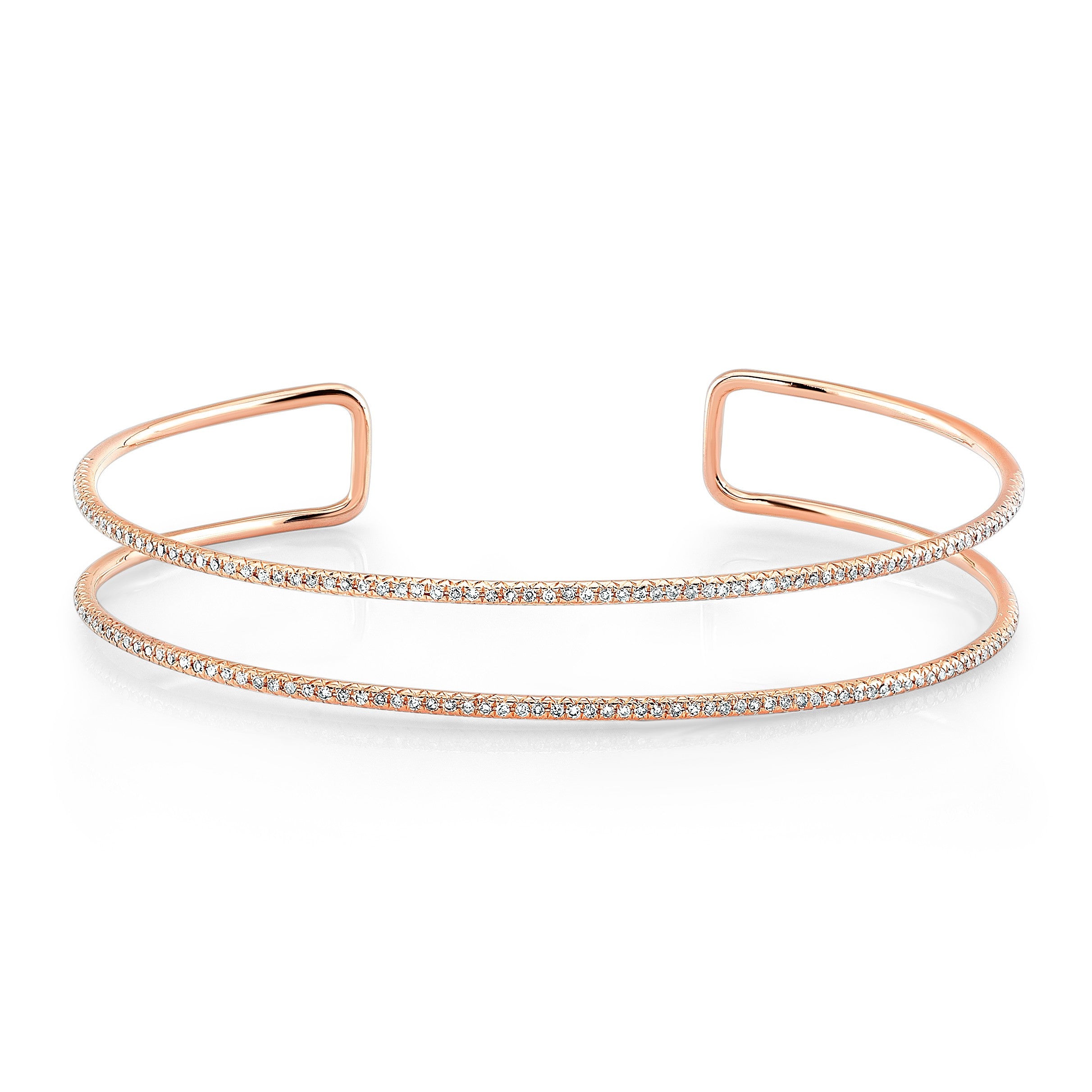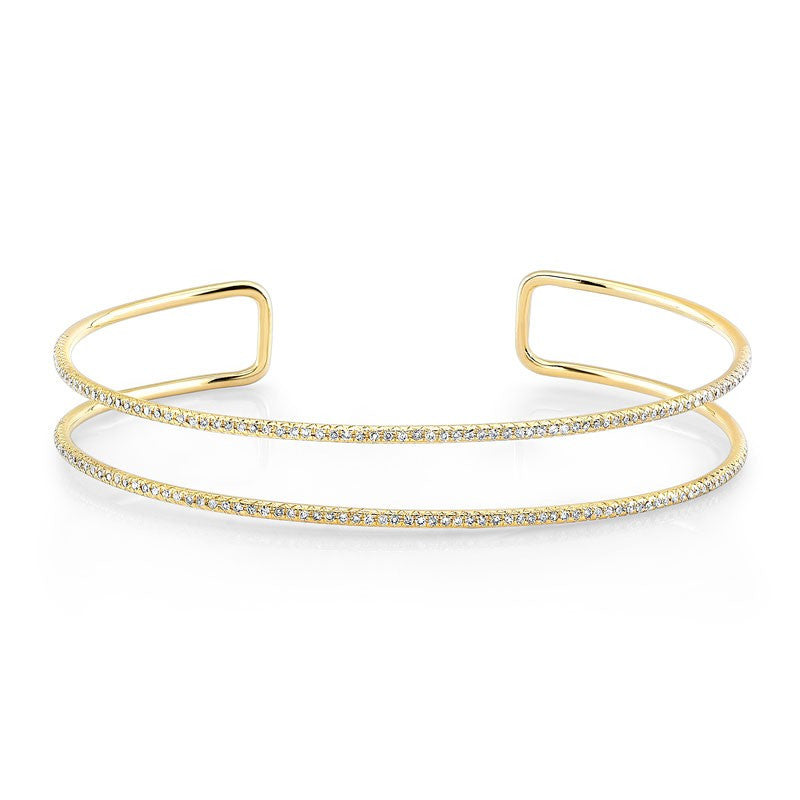 This Double Row Diamond Cuff (0.51ct.tw) is available in 14K White, Yellow, and Rose Gold. This cuff looks amazing solo, and stacked with other bangles/cuffs!