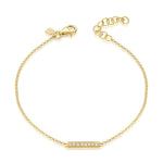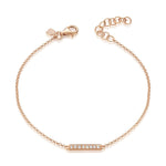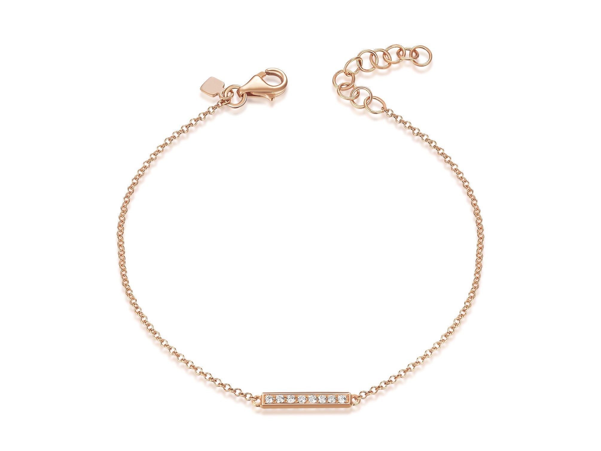 This Tiny Diamond Bar Bracelet (0.06ct.tw) is available in 14K White, Yellow, and Rose Gold. This design comes with a 6" chain and 1" extender for easy adjustment.