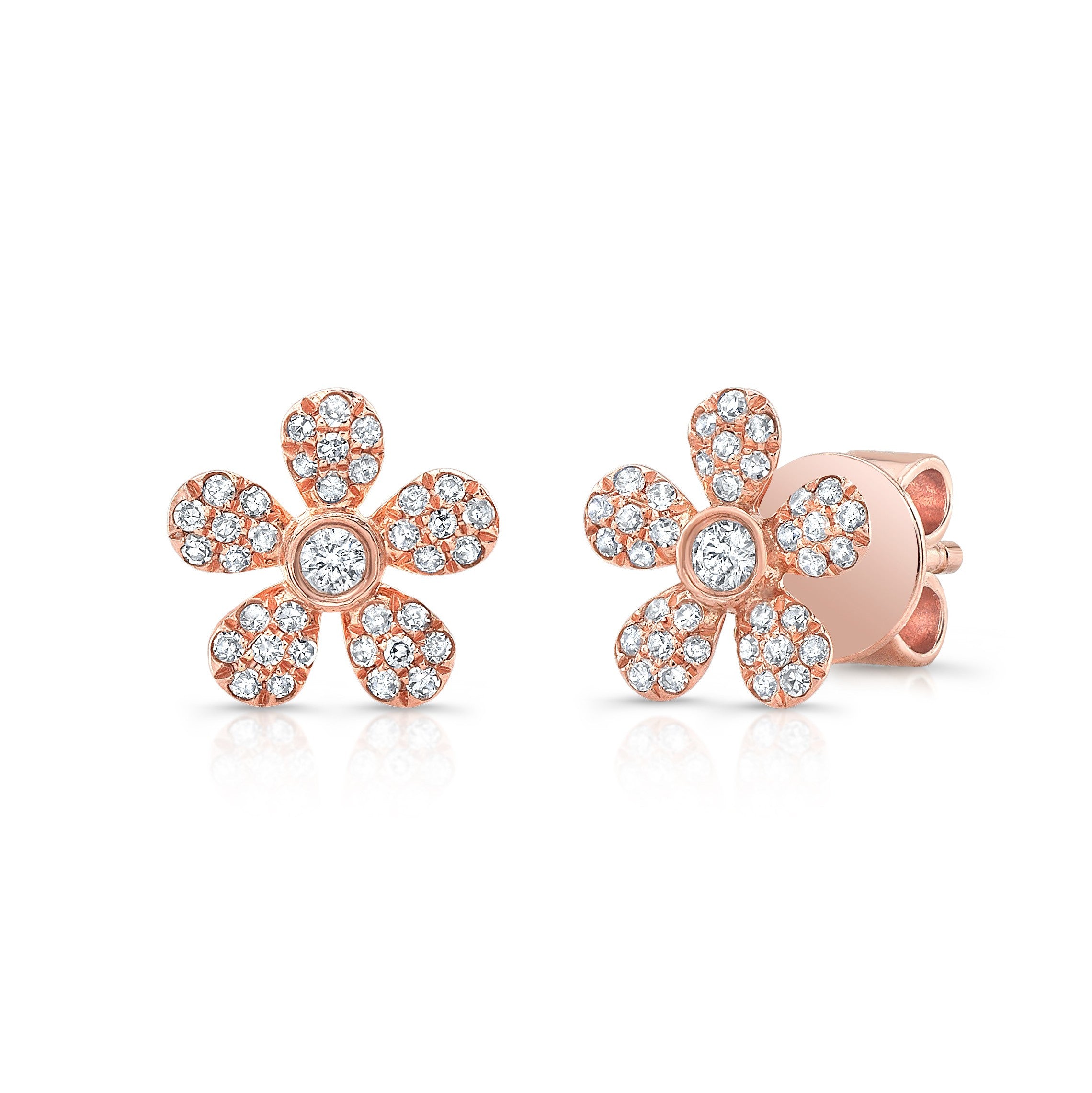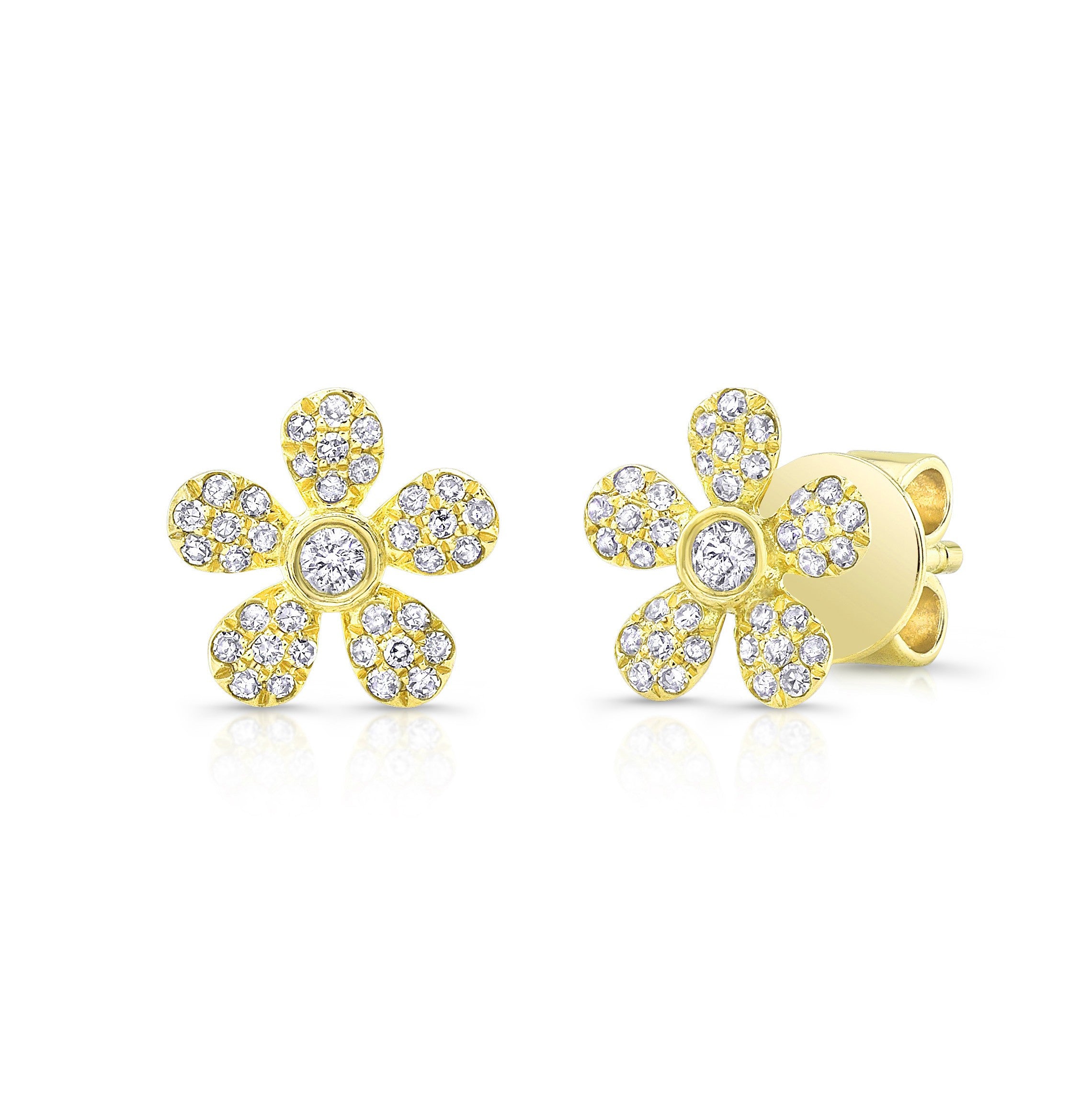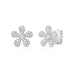 These Diamond Pave Flower earrings (0.23ct.tw) are available in 14K White, Yellow, and Rose Gold. This design has a post and butterfly closure.