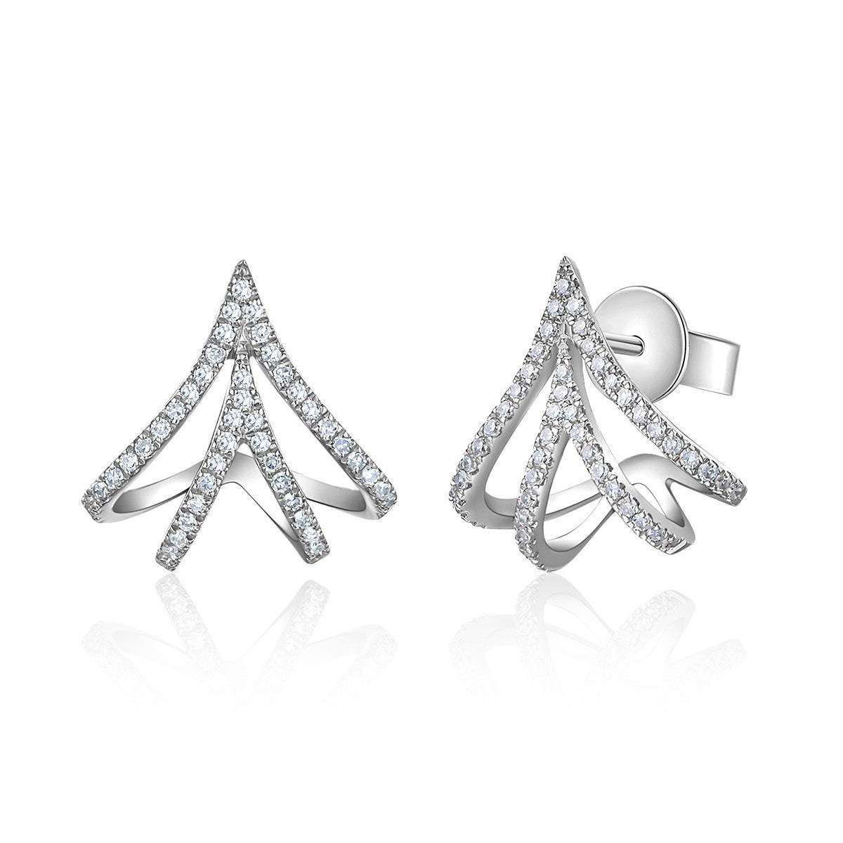 These Double Split Diamond Huggie earrings are available in 14K White, Yellow, and Rose Gold. This design wraps around the bottom of your lobe and has a post and butterfly closure.