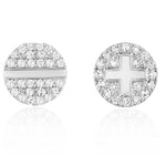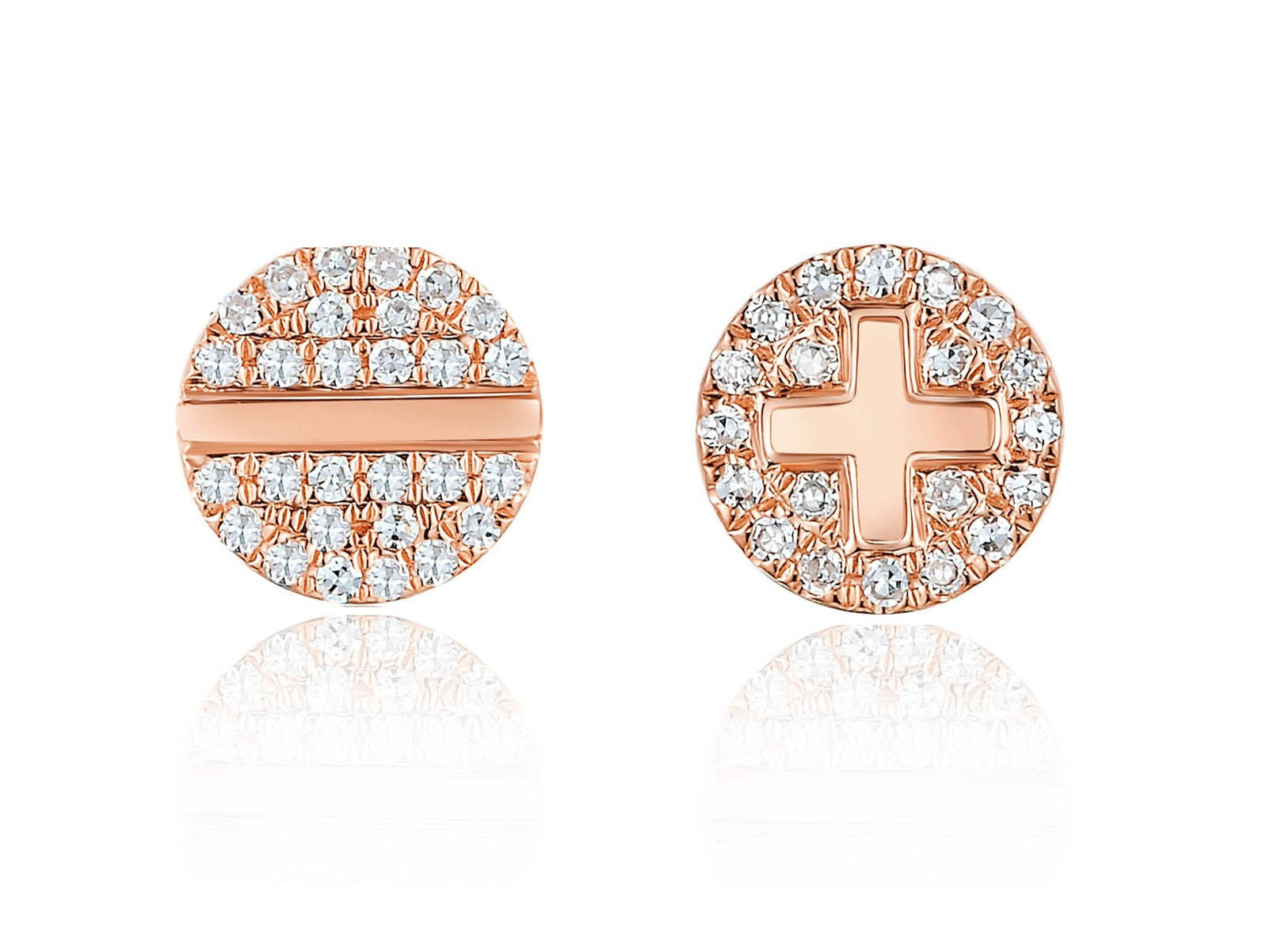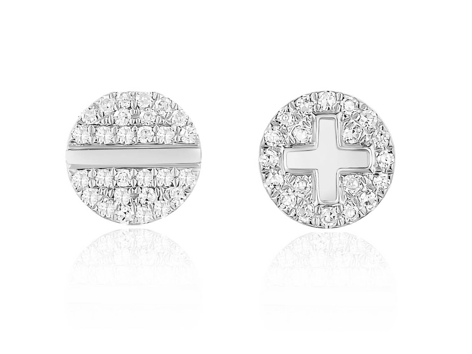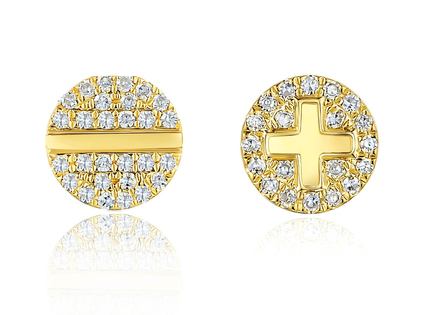 These Pave Plus and Minus Earrings are available in 14K White, Yellow, and Rose Gold. This design has a post and butterfly closure.