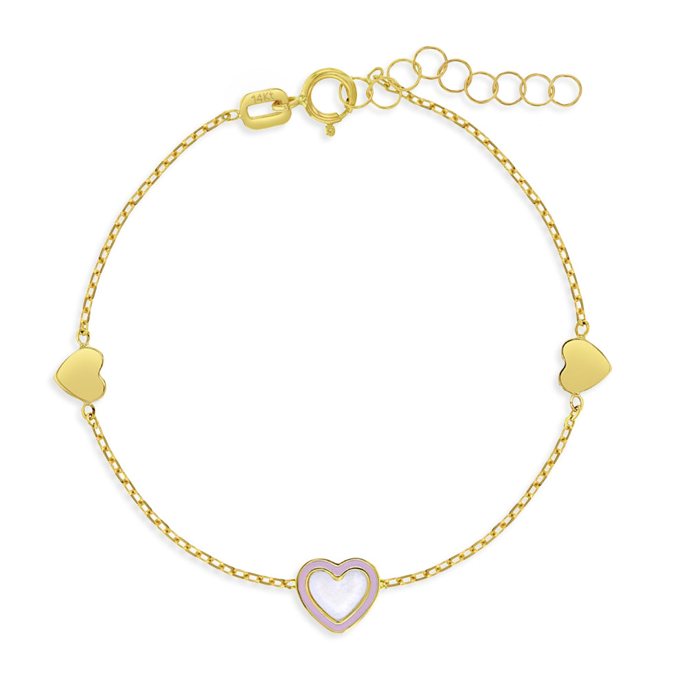 14k Yellow Gold Mother of Pearl Heart Kids Bracelet.