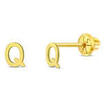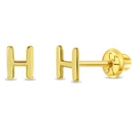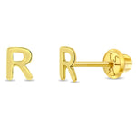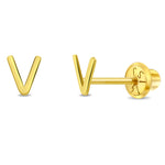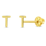 14k Yellow Gold Itsy Bitsy Initial Kids earrings with screw backing.