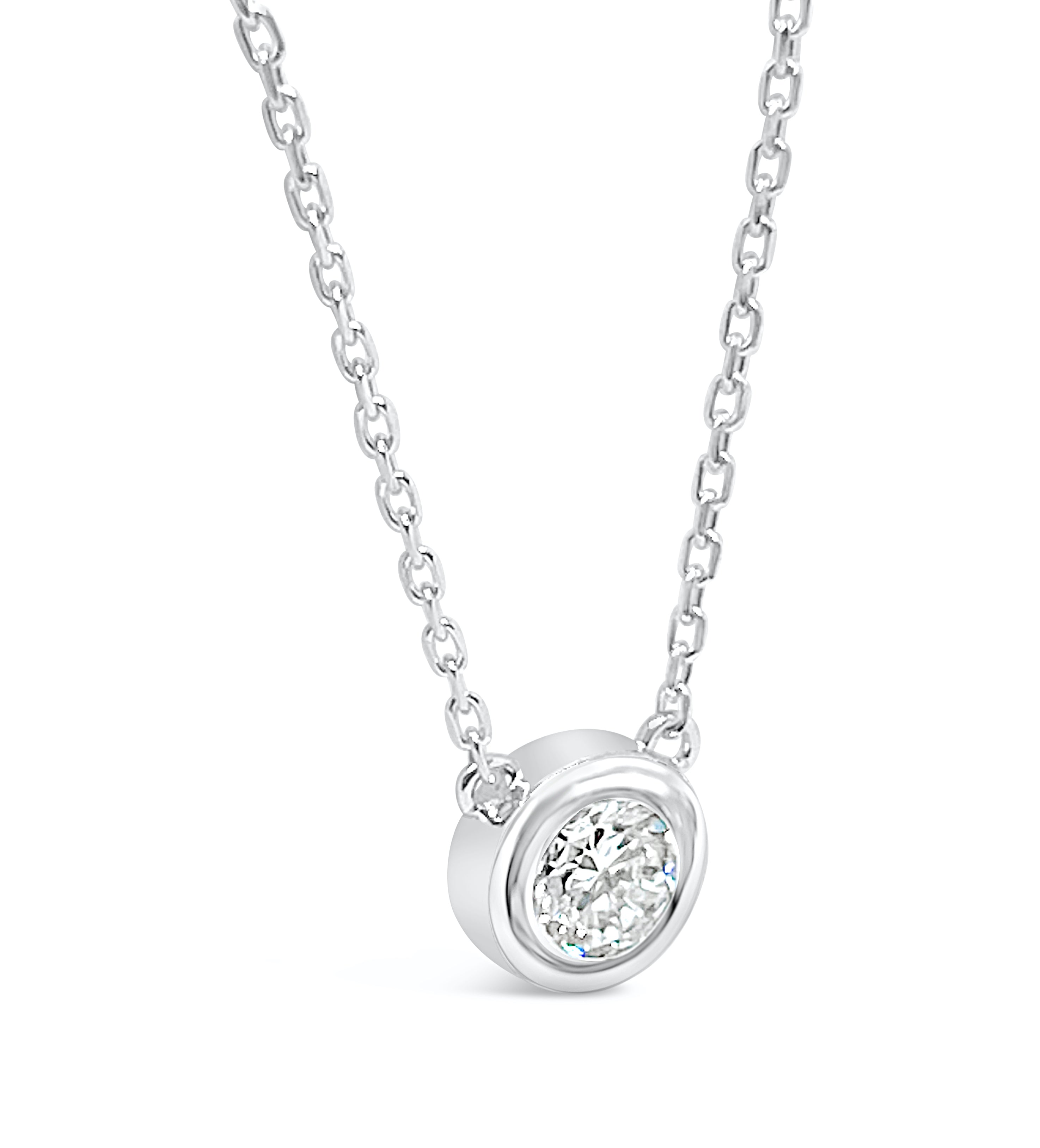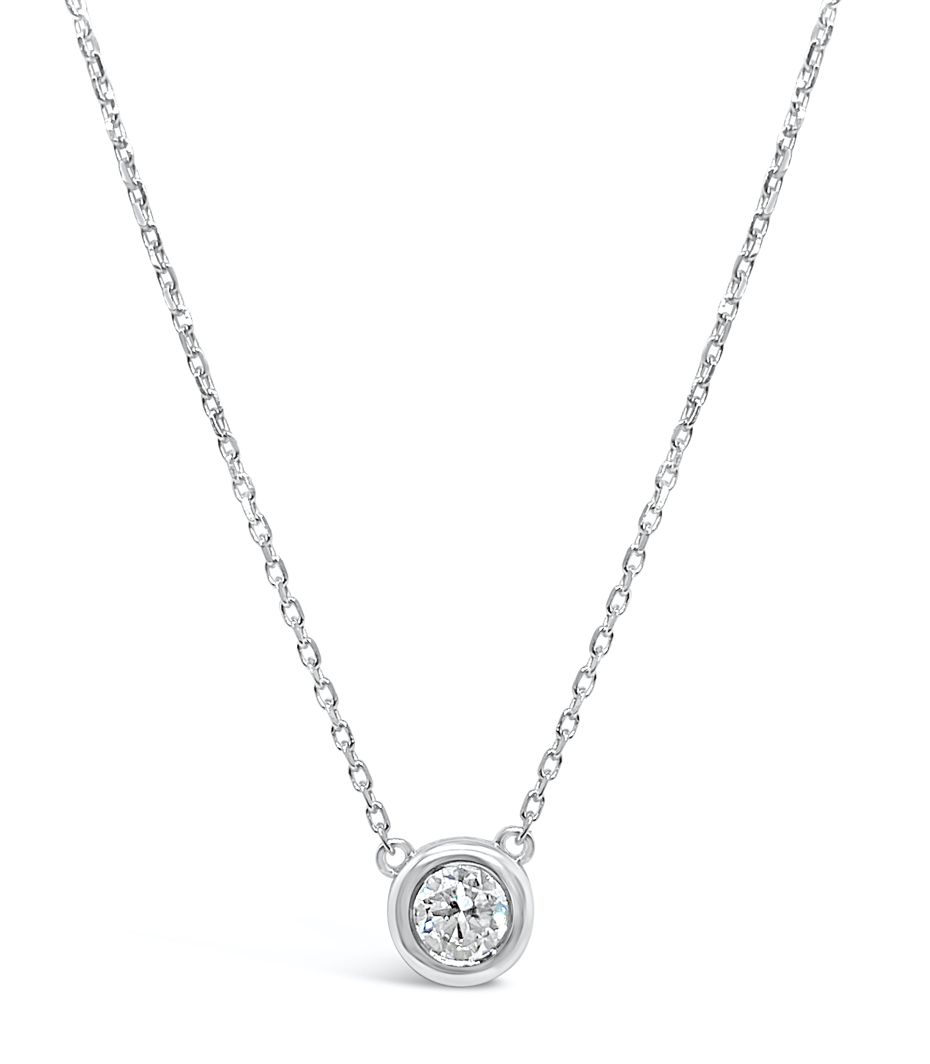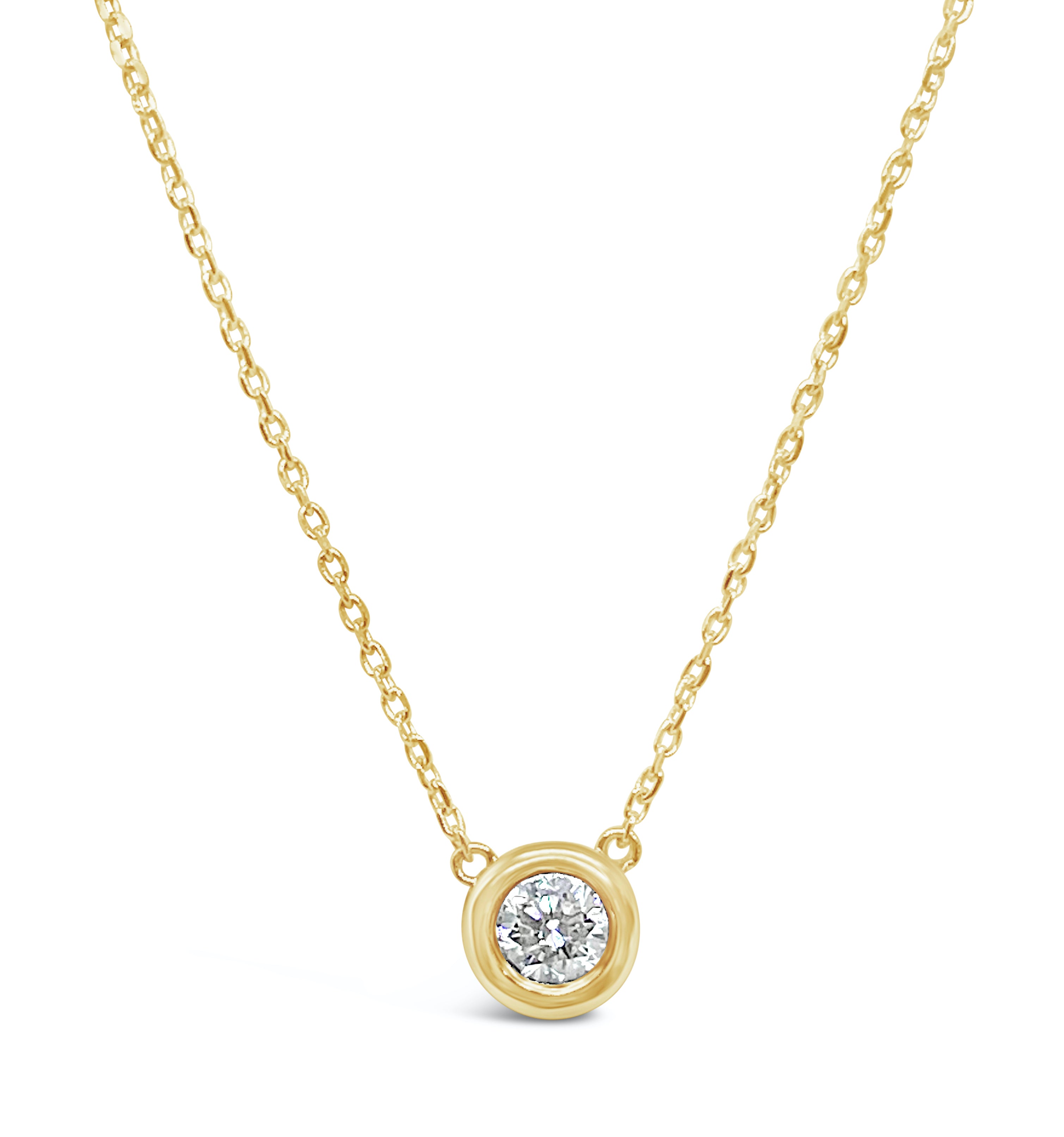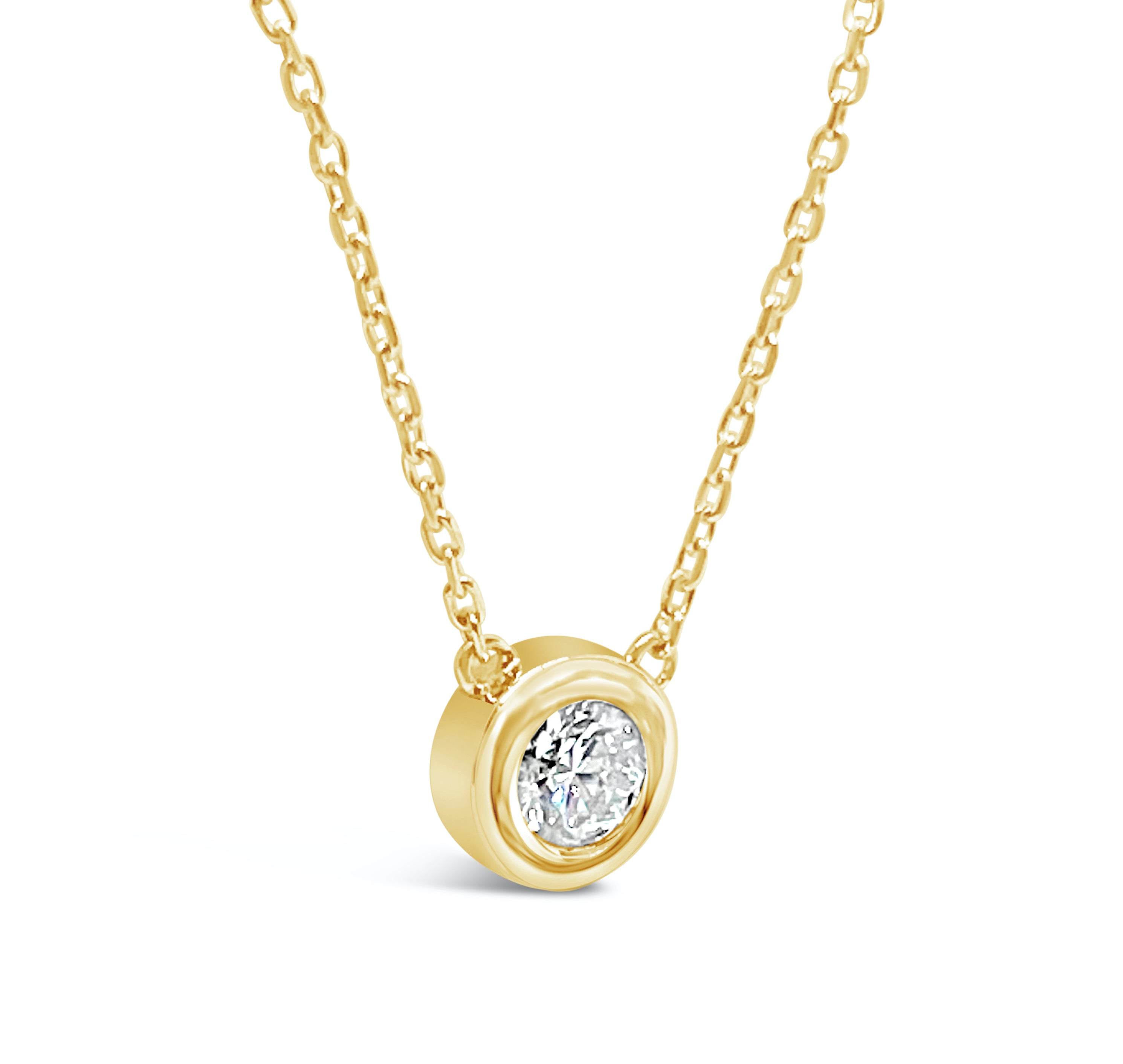 This Deep Bezel Lab Diamond Solitaire Necklace-5.2mm is available 14K White, Yellow, and Rose Gold.