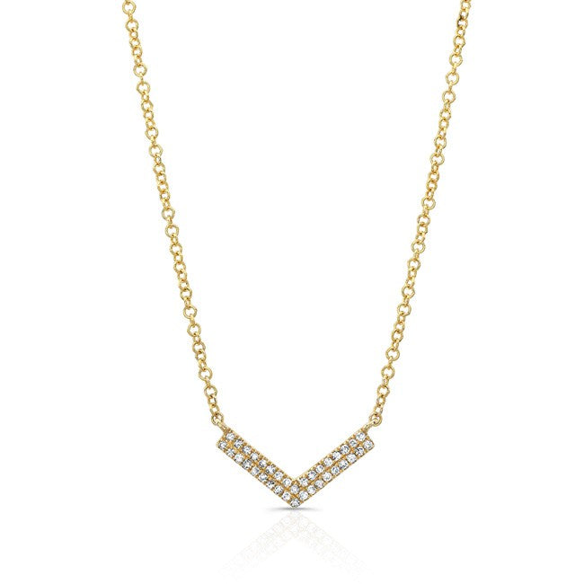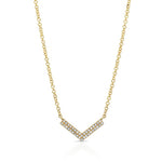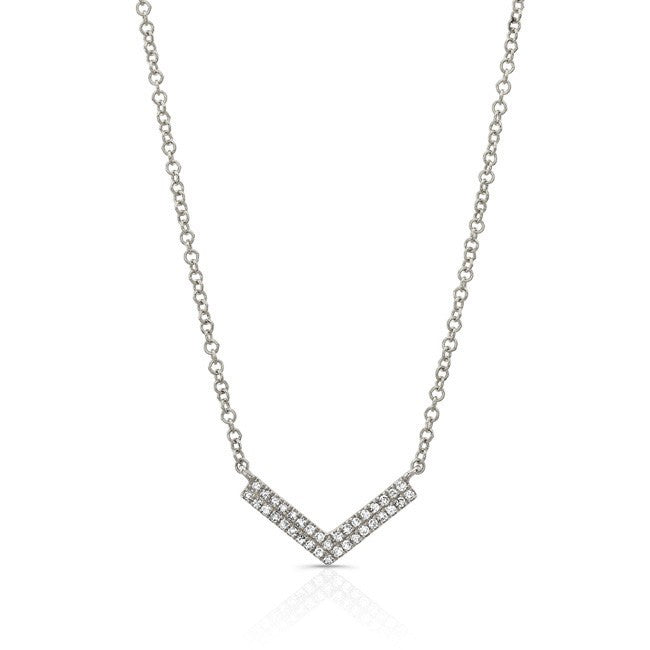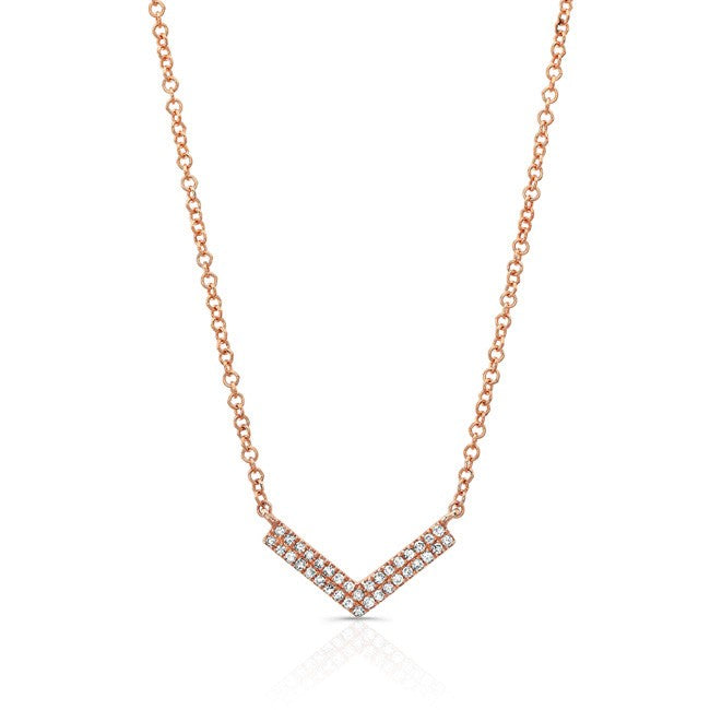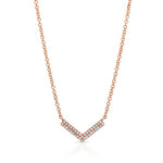 This Diamond Chevron Necklace is available in 14K White, Yellow, and Rose Gold. This design comes with an 18″ chain, which can be made adjustable.