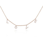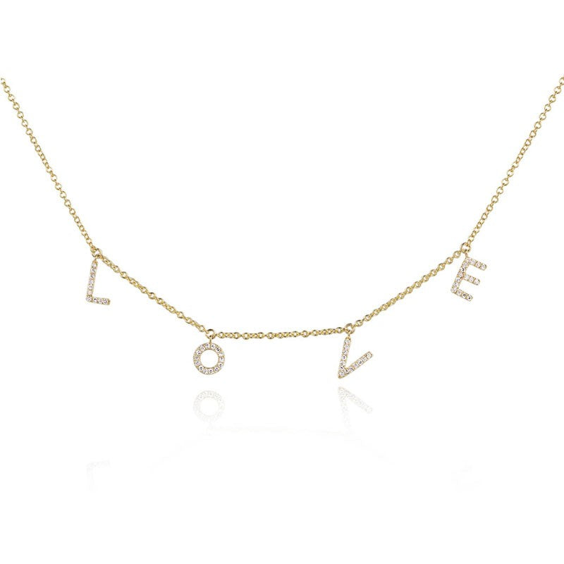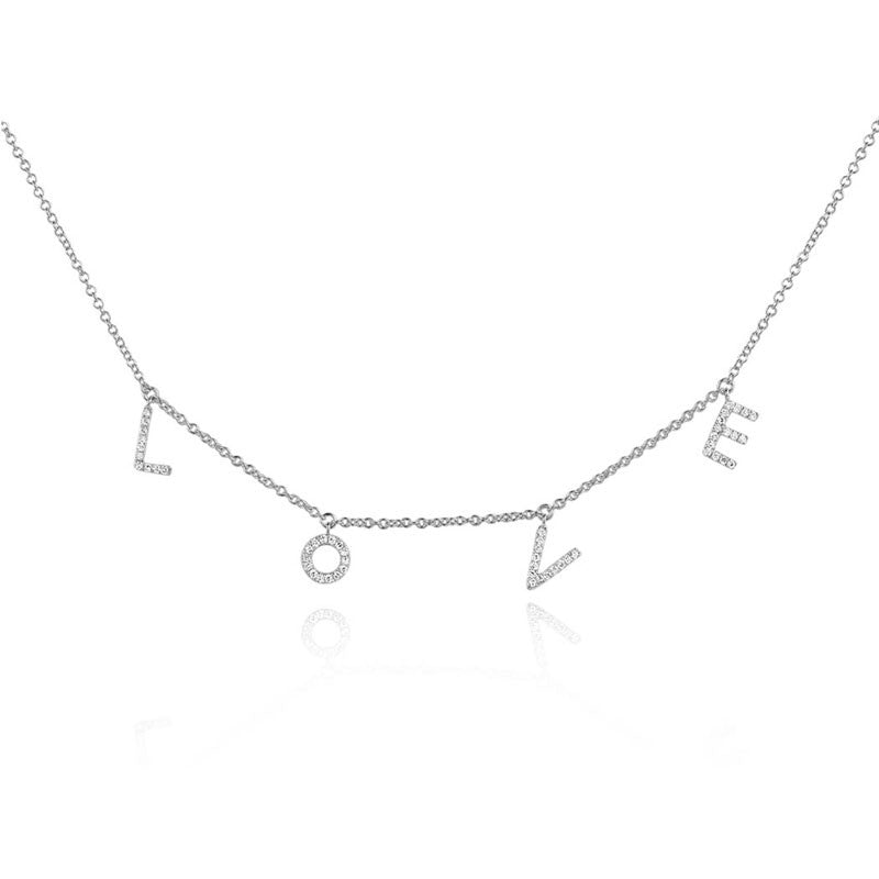 This LOVE Dangle Necklace is available in 14K White, Yellow, and Rose Gold. This design comes with an 18″ chain, which can be made adjustable. This necklace looks amazing layered!