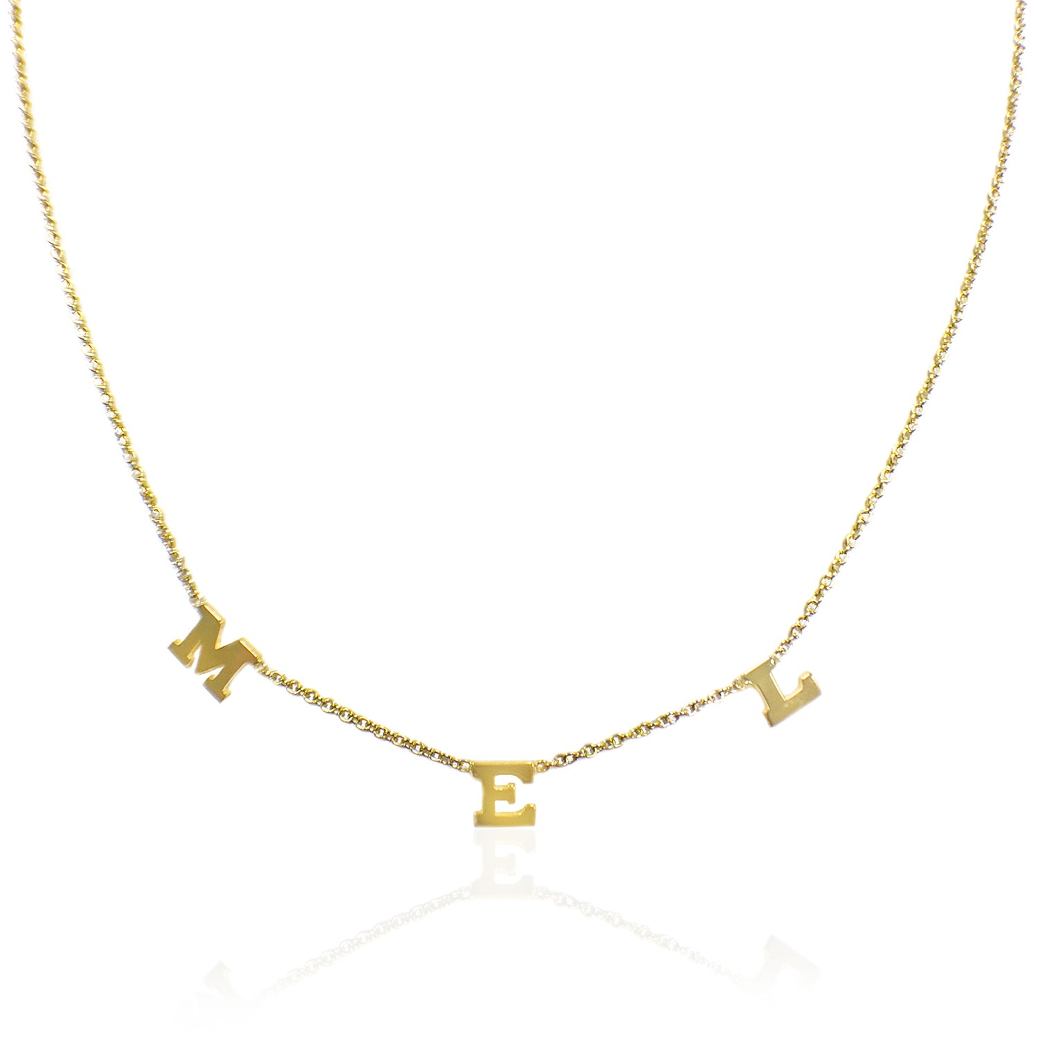 This Mini Varsity Initial necklace is available in 14K White or Yellow Gold in the letter(s) of your choice. Choose from 1-7 letters.