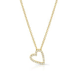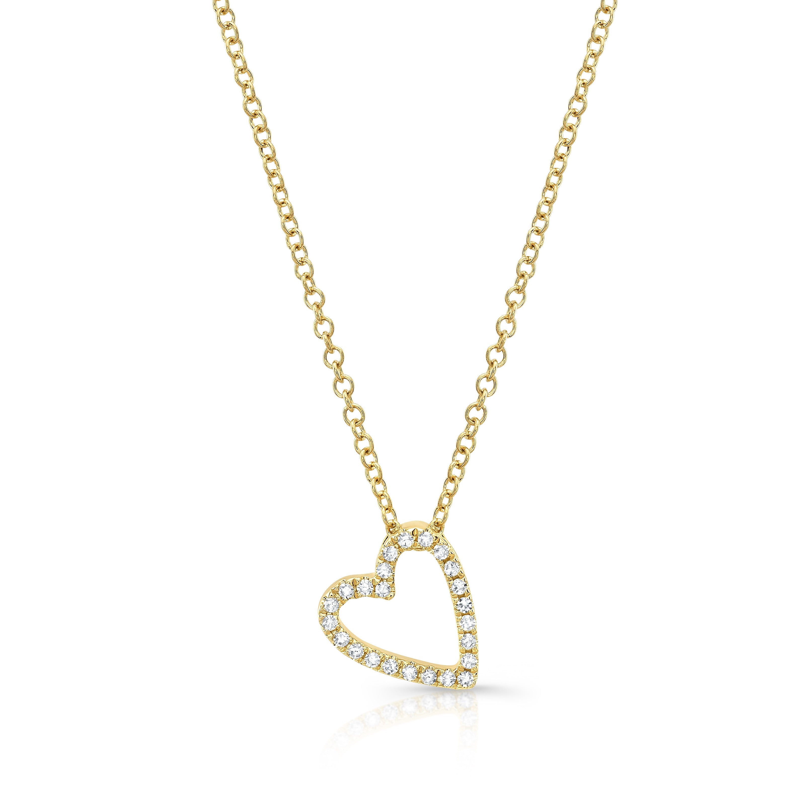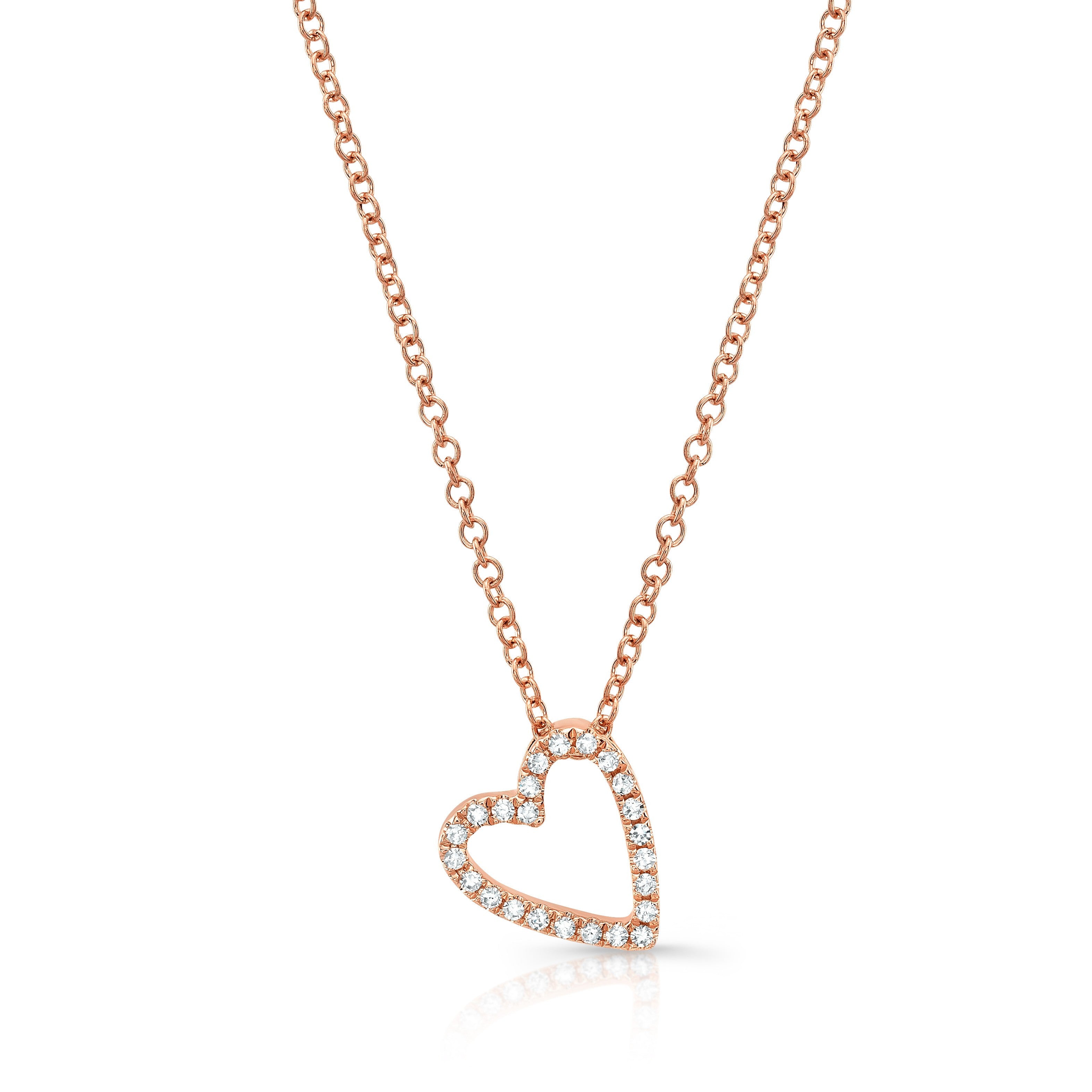 This Open Slanted Heart diamond necklace is available in 14K White, Yellow, and Rose Gold. This design comes with an 18″ chain, which can be made adjustable.