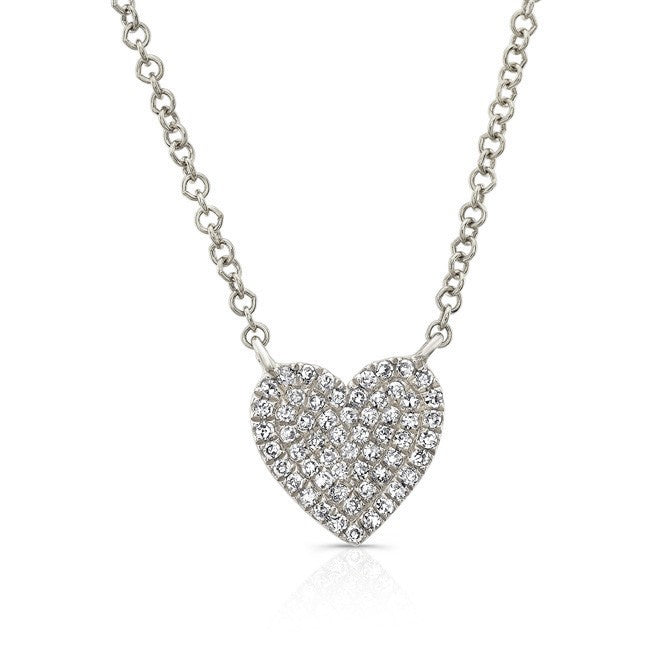 This Pave Diamond Heart necklace is available in 14K White, Yellow, and Rose Gold. This design comes with an 18″ chain, which can be made adjustable.