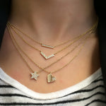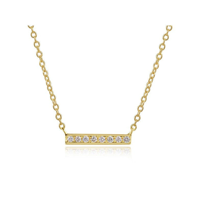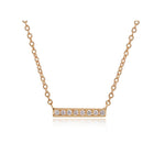 This Short Diamond Bar necklace (0.06TW) is available in 14K White, Yellow, and Rose Gold. This design comes with an 18″ chain, which can be made adjustable.