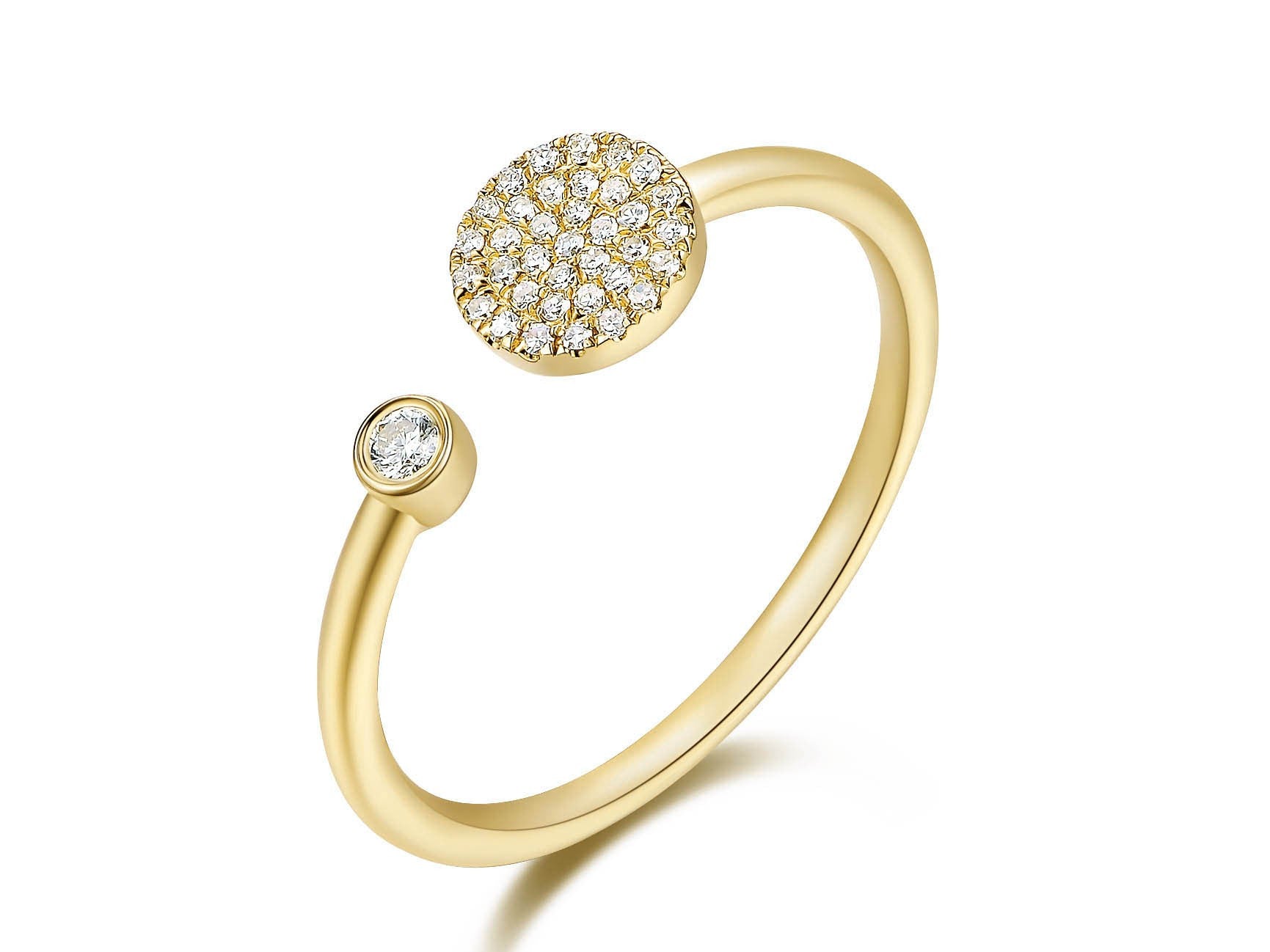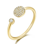 This Pave Disc and Bezel Diamond Cuff Ring (Diamond weight 0.11TW) is available in 14K White, Yellow, and Rose Gold.