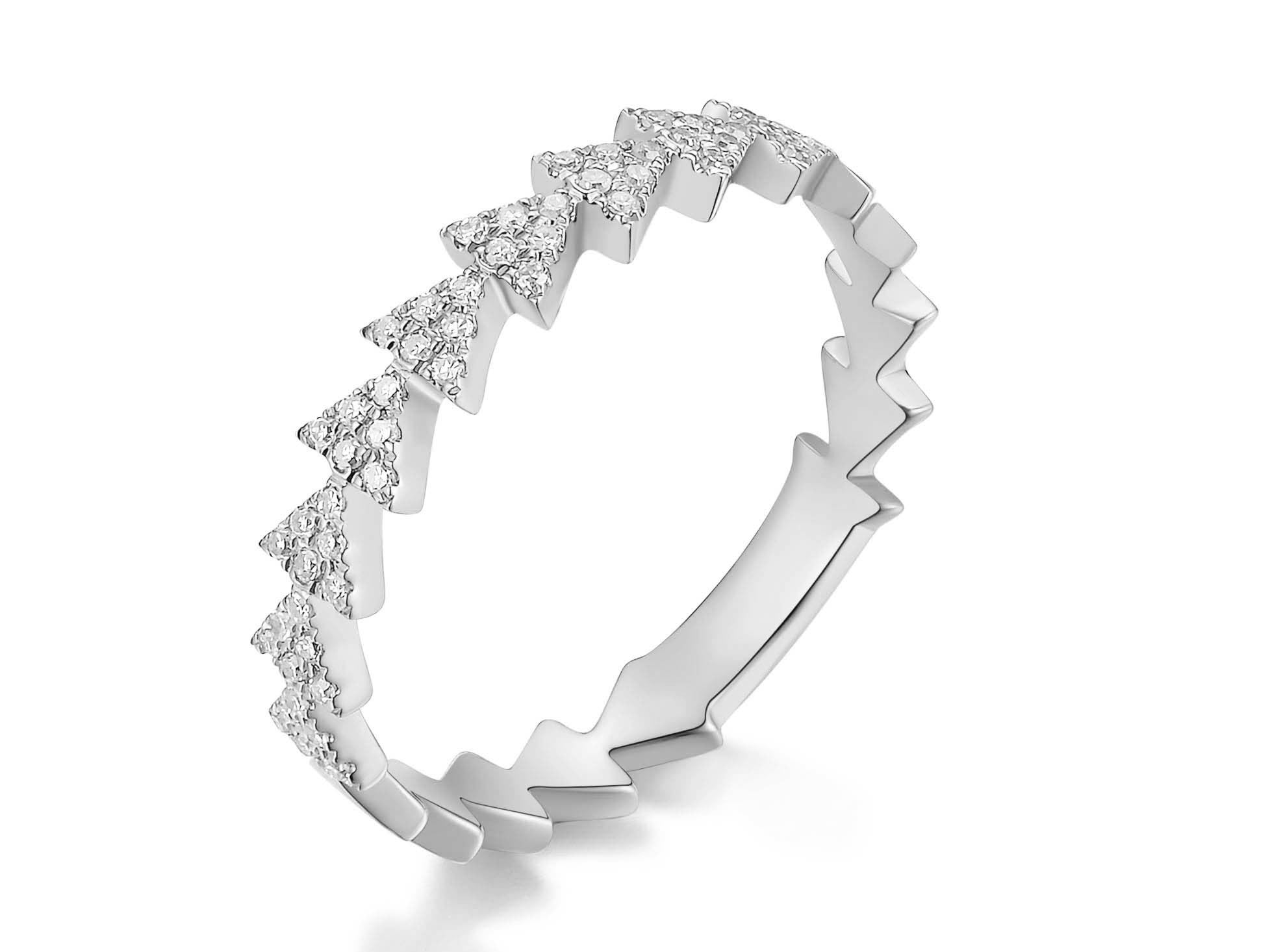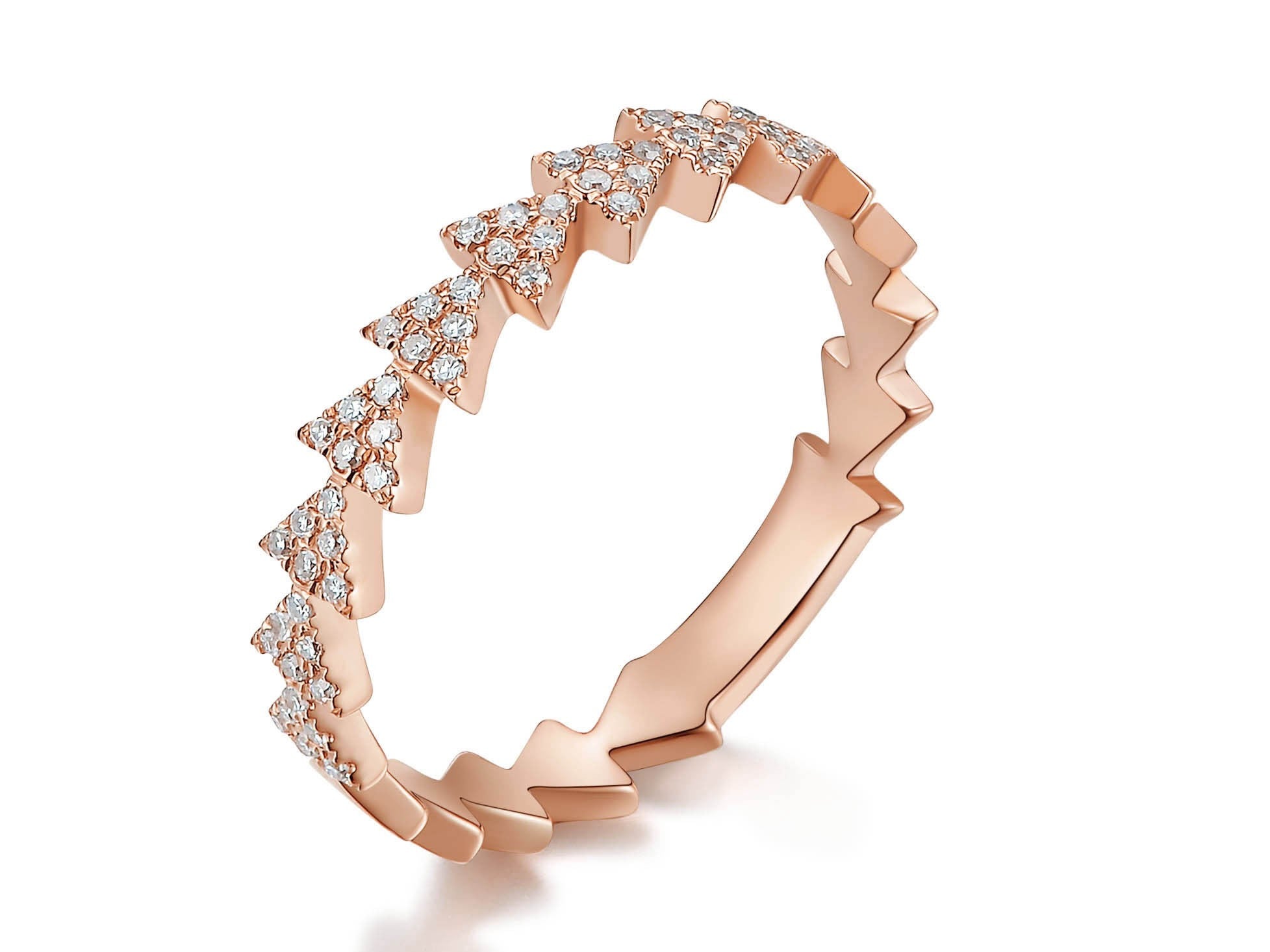 This Tiny Triangle Diamond Ring is available in 14K White, Yellow, and Rose Gold.