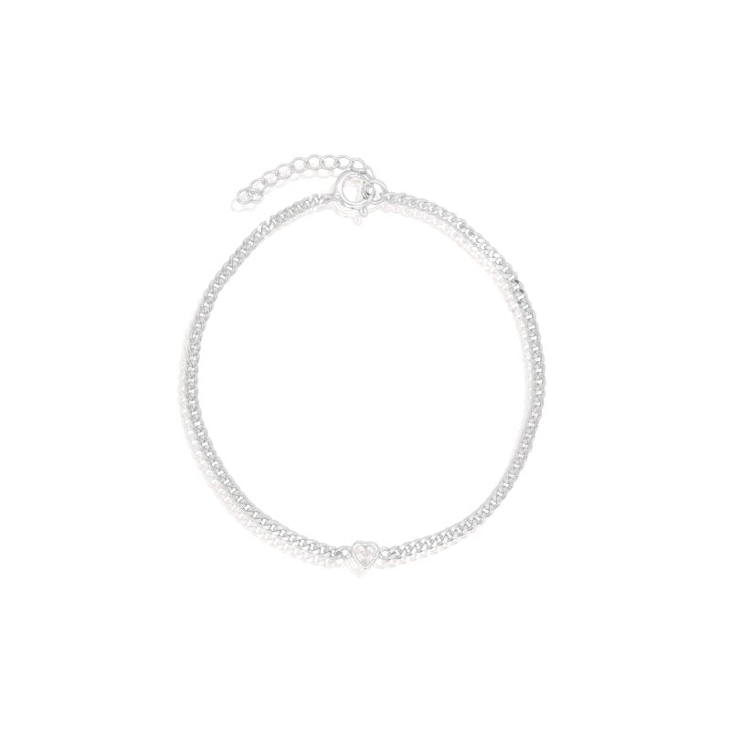Sterling Silver Solitaire Bezel Set Heart CZ Curb Chain Bracelet