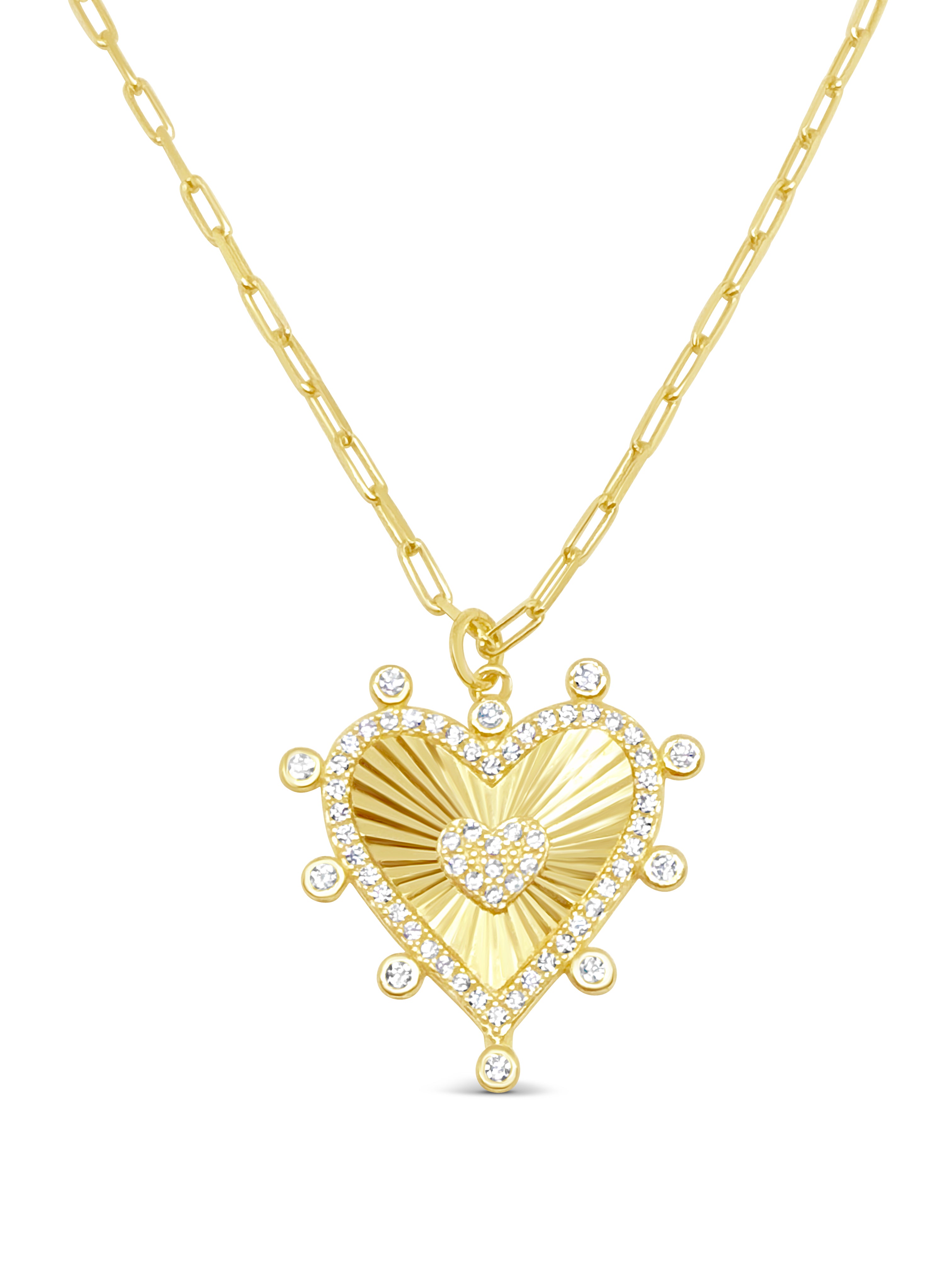 This Fluted CZ Heart Necklace is available to order in Sterling Silver-Gold Vermeil