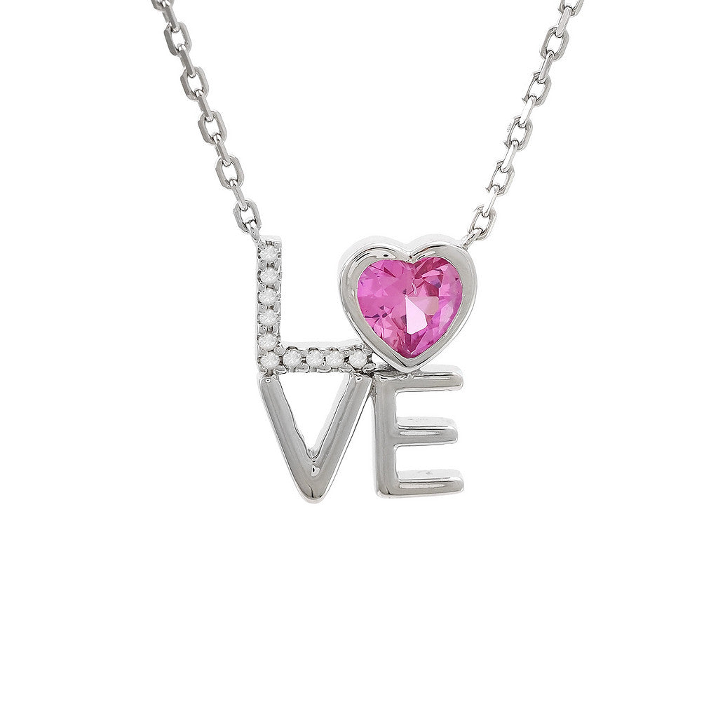 This LOVE Necklace is available in sterling silver with diamonds and pink topaz.