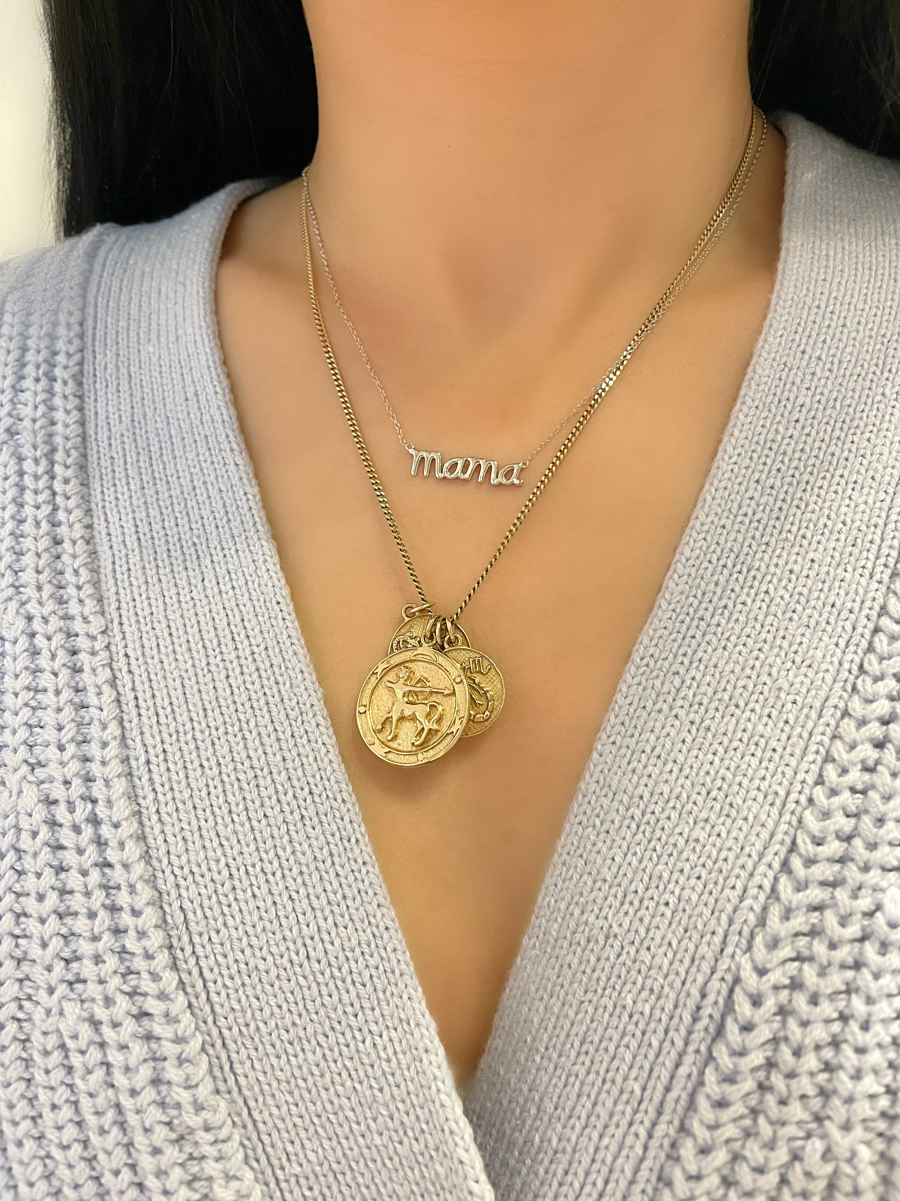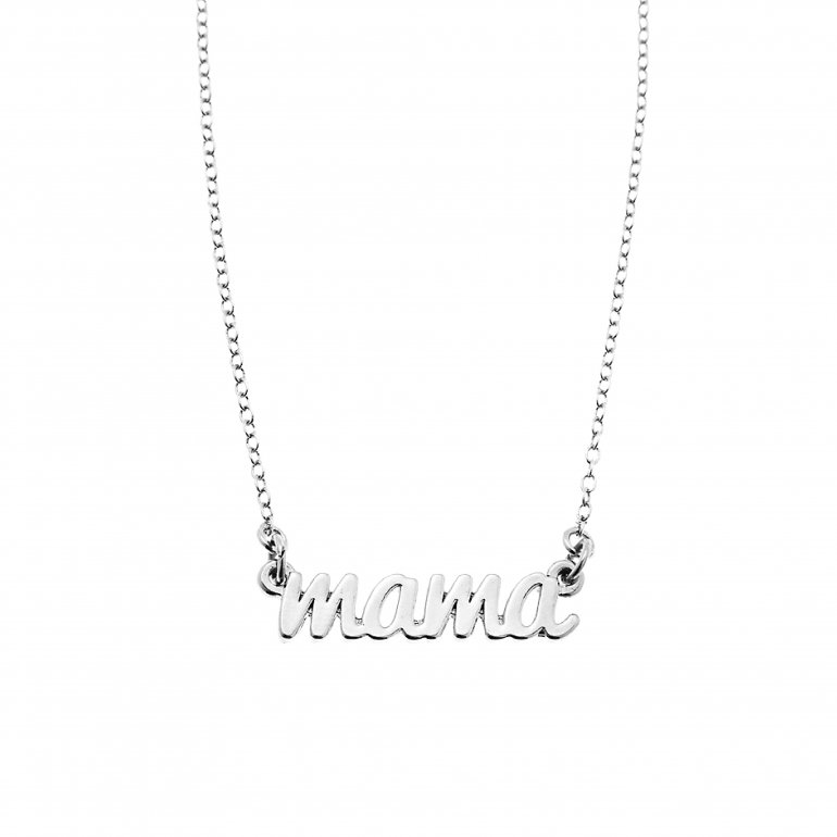 This Mama Necklace is available to order in Sterling silver white, yellow or rose gold.