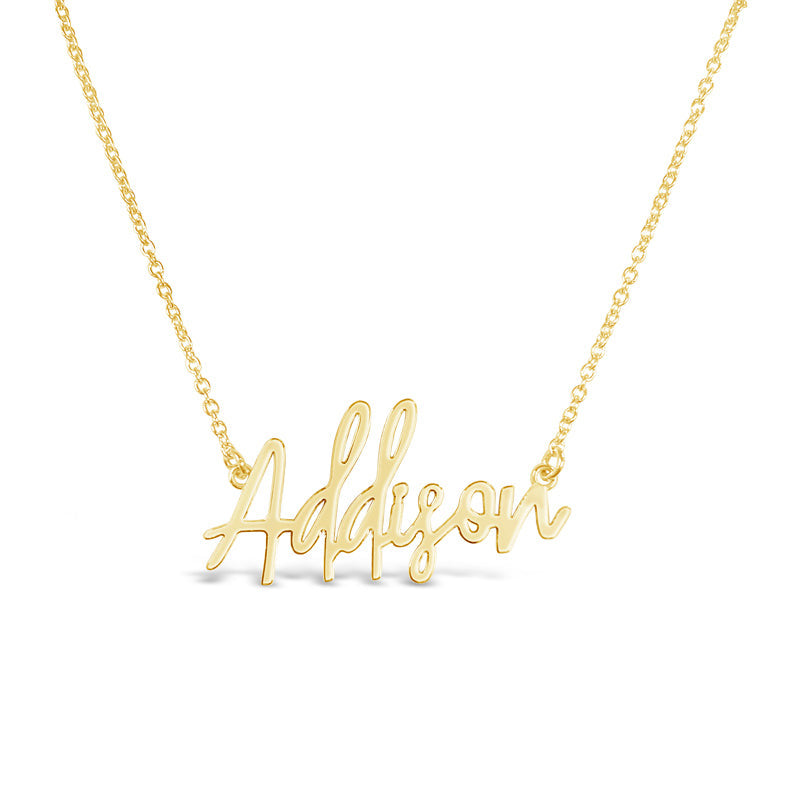 This Sterling silver handwritten style name necklace is available in sterling silver white, yellow or rose gold plated.