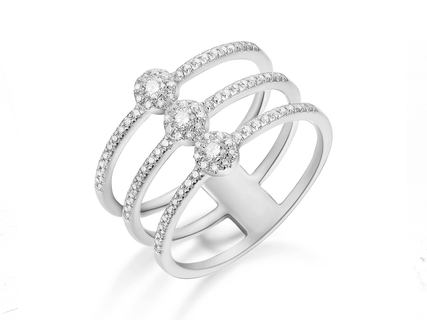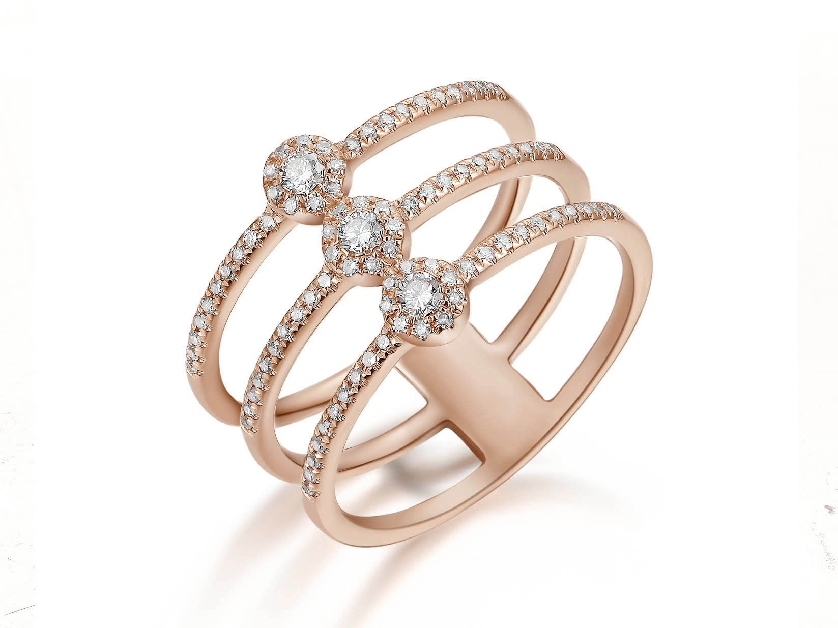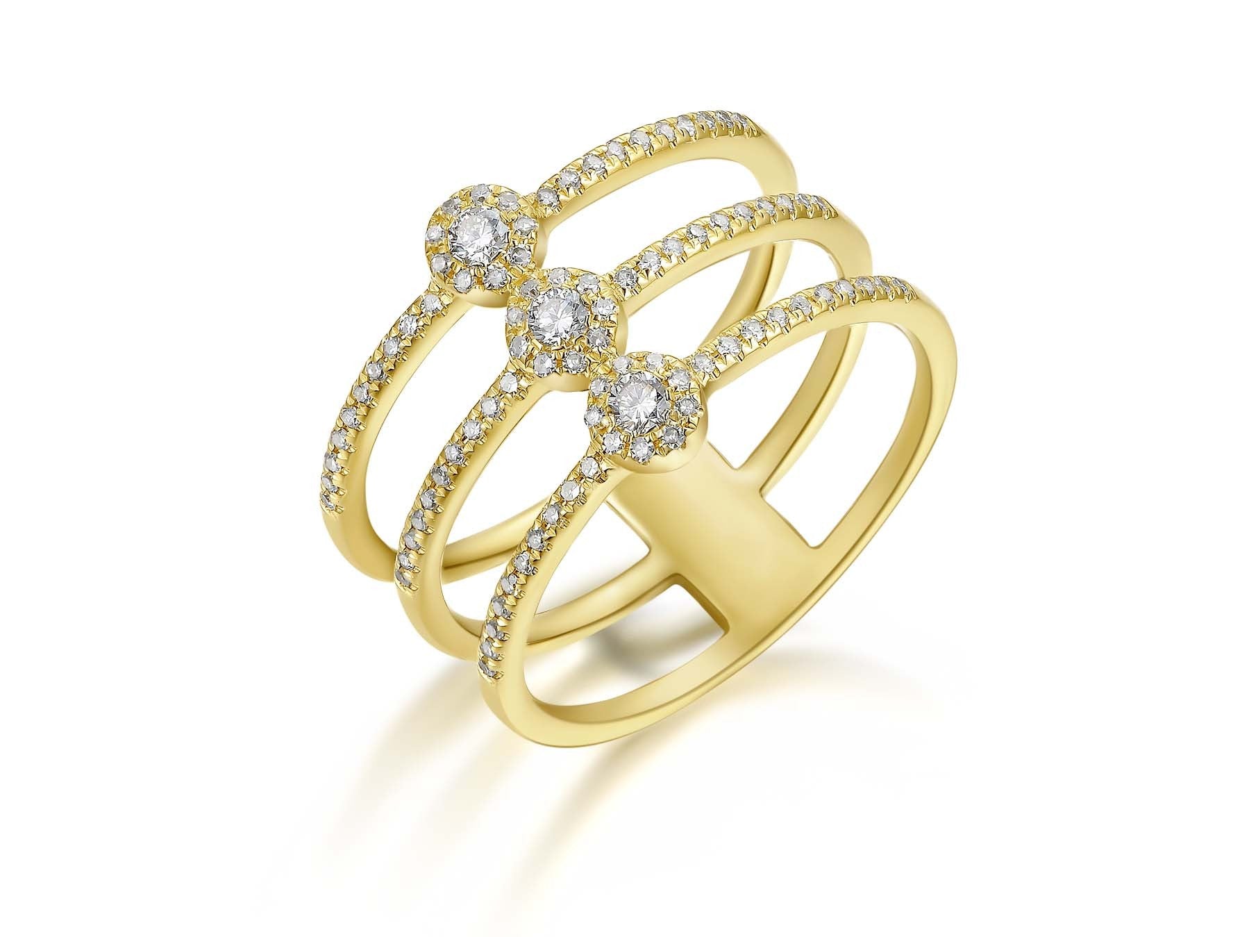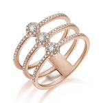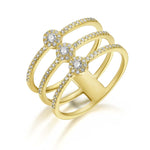 This 3 Row Split Halo Ring is available in 14K White, Yellow, and Rose Gold.