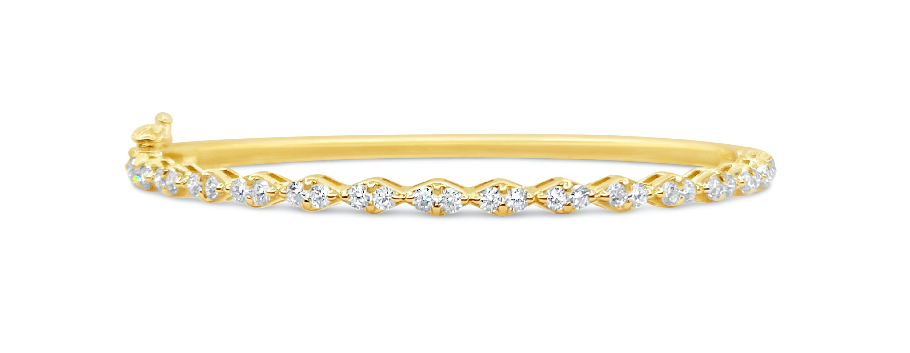 This Illusion Marquise Lab Diamond Bangle is available to order in 14K White, Yellow, and Rose Gold. The illusion is created using round diamonds with a marquise shaped. design.