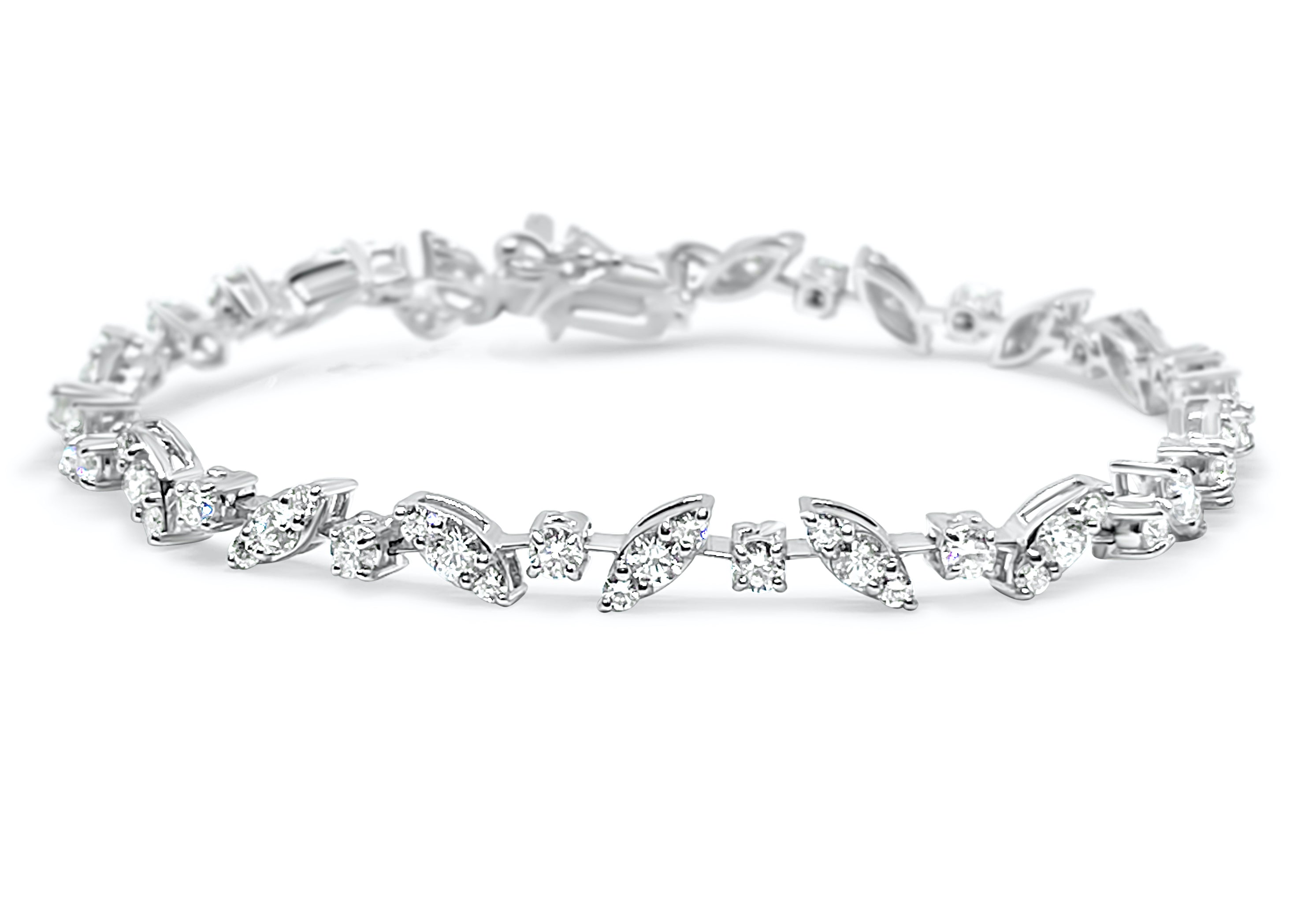 This Illusion Marquise Lab Diamond Bracelet is available to order in 14K White, Yellow, and Rose Gold. The illusion is created with round diamonds in a marquise shape design.