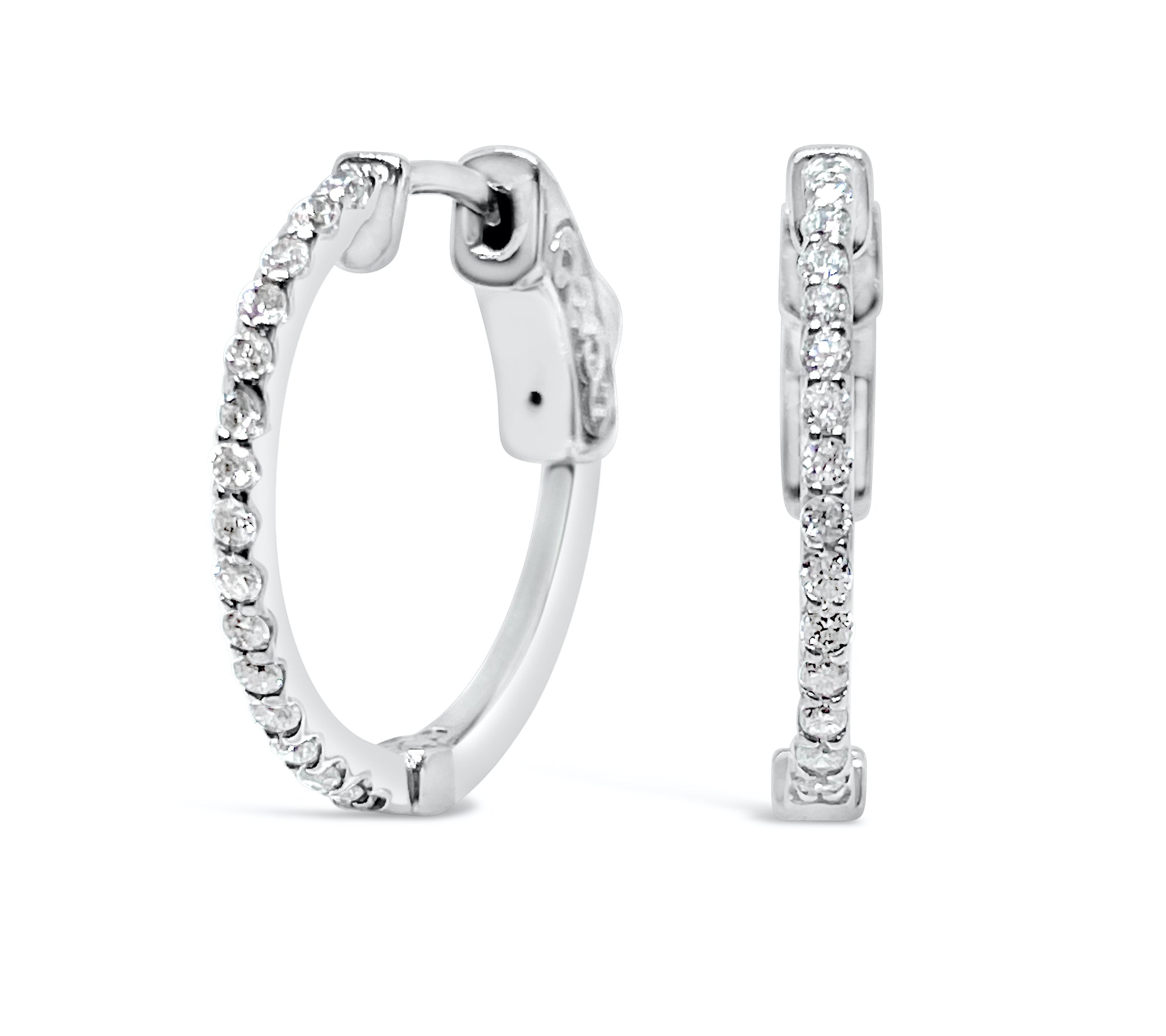 These Lab Diamond Hoops- 19mm are available in 14k white or yellow gold with a secure push lock closing system