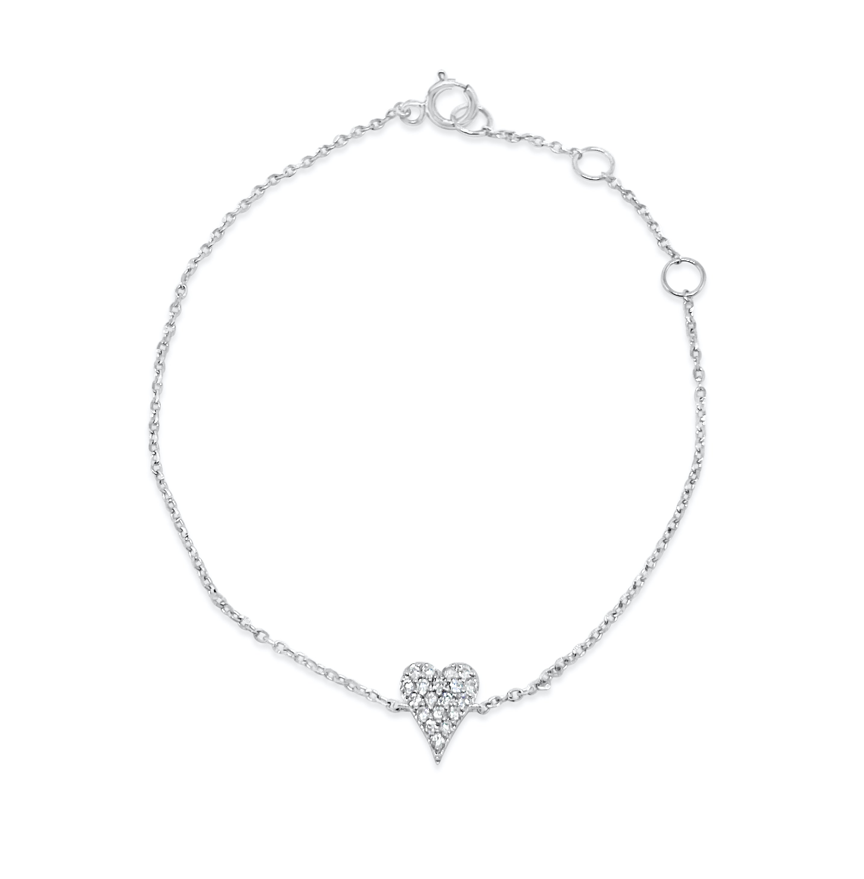 This Narrow Pave Diamond Heart Bracelet is available in 14K White, Yellow, and Rose Gold. This design comes with an adjustable chain.